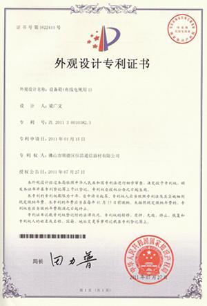 1. Certificate of patent: an appearance design of communication equipment box 2011