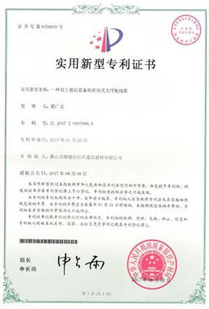 4. Certificate of utility model patent: a multi-functional fiber distribution box for communication equipment 2017